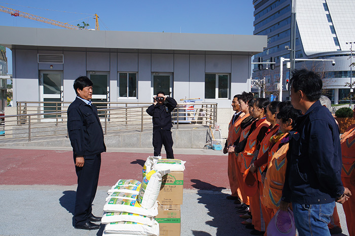 曲海同志代表車(chē)隊慰問(wèn)環(huán)衛工人